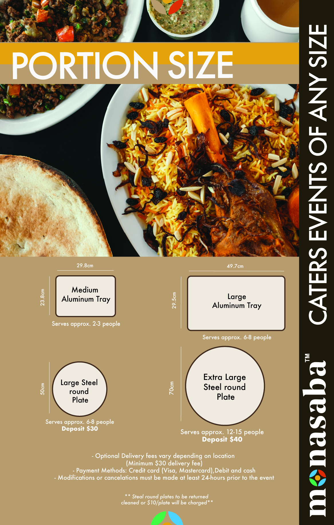 We cater basically everything from Office parties, small or large party, corporate catering, any event large or small, birthday parties, holiday parties, any celebration, Wedding/engagement and Aqiqah